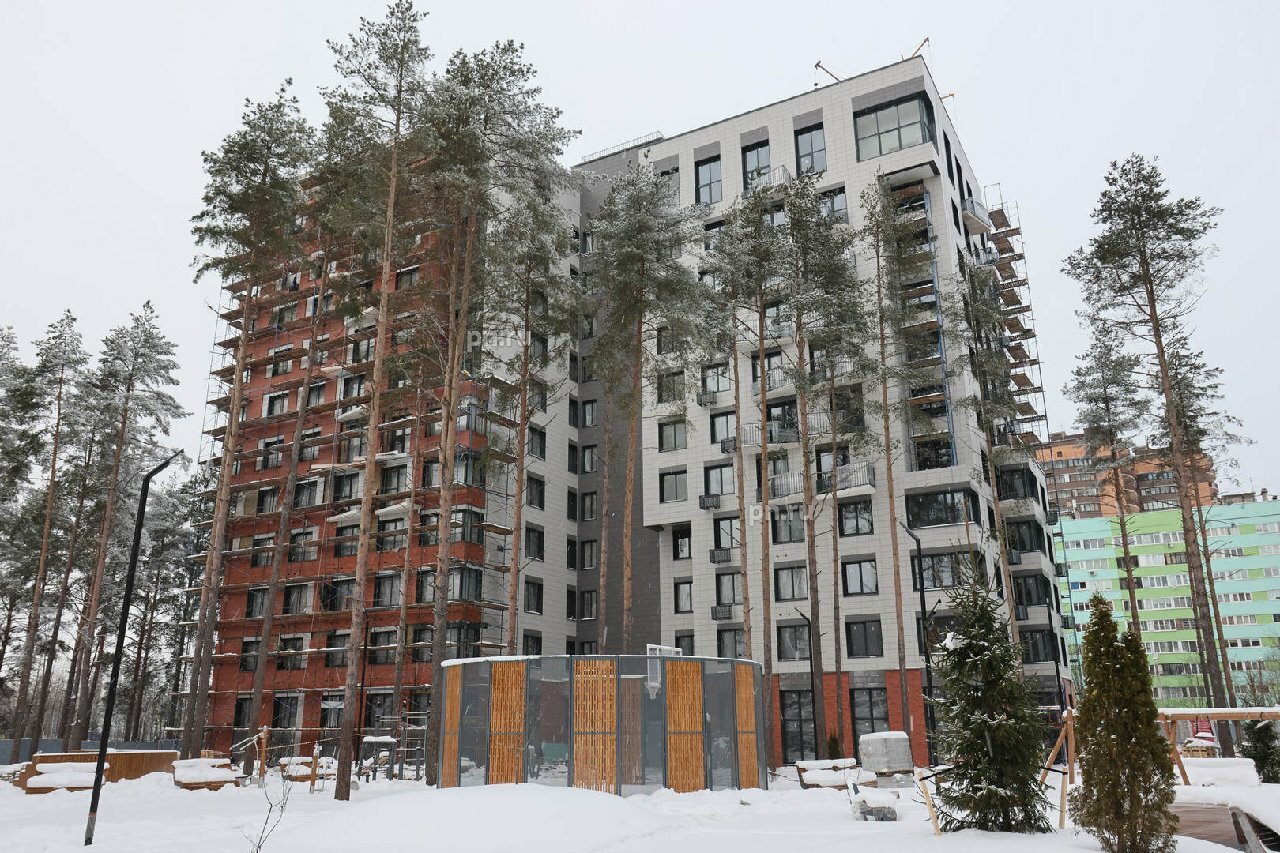 Планировки квартир разнообразны: от скромных студий до семейных евроформатов. В резиденциях на последних этажах предусмотрены панорамные окна с видом на лес и потолки высотой до 4,3 м.