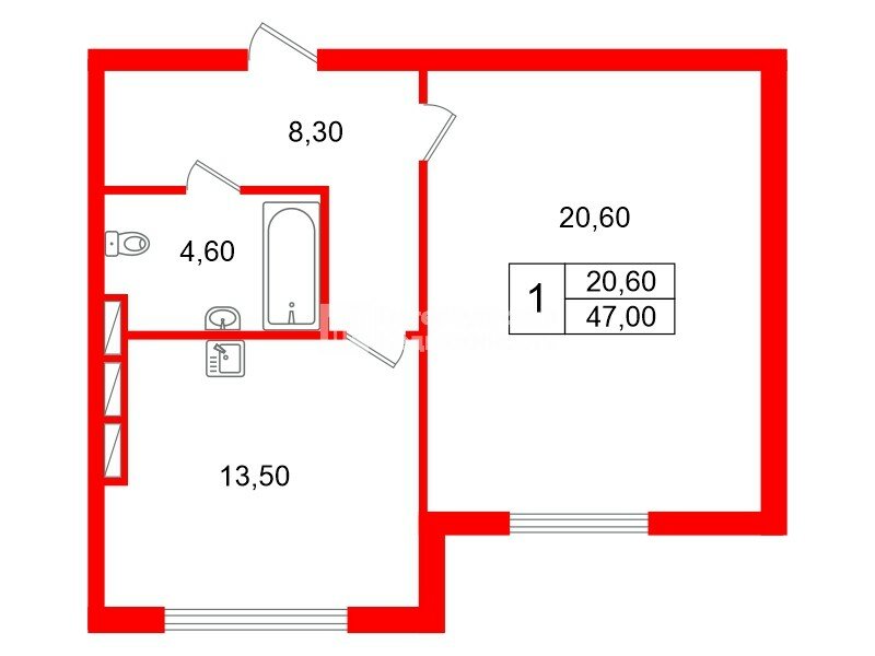 1-комн. кв. 47 м² у метро Ладожская