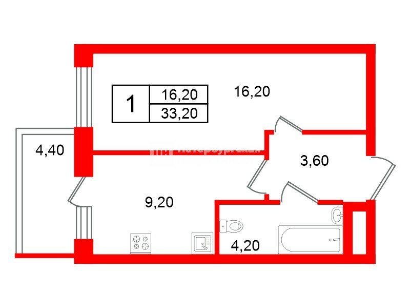 1-комн. кв. 33.2 м² у метро Улица Дыбенко