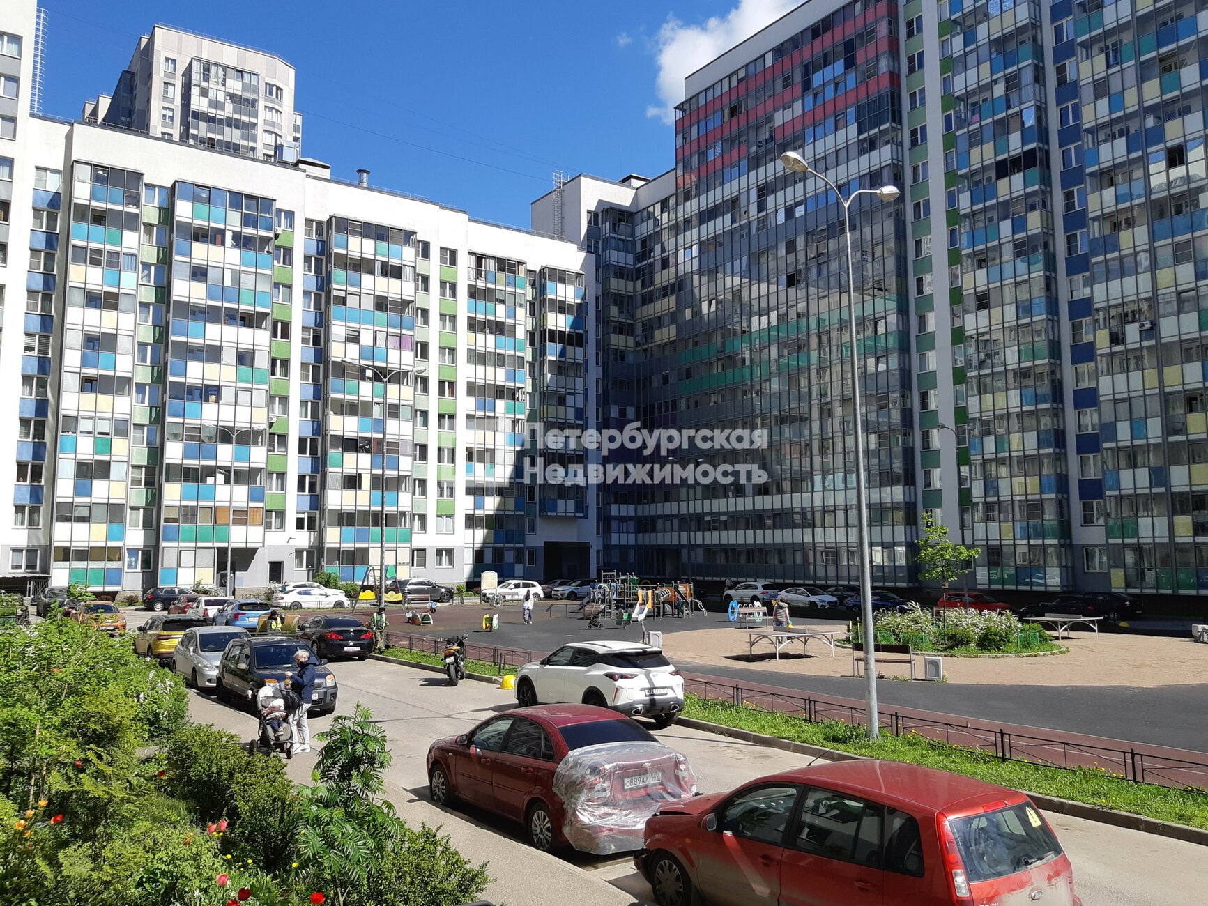 Дворы с детскими и спортивными площадками. Для прогулок есть два парка: Мега-Парк, Парк Оккервиль. До ТРК Мега 15 минут пешком.