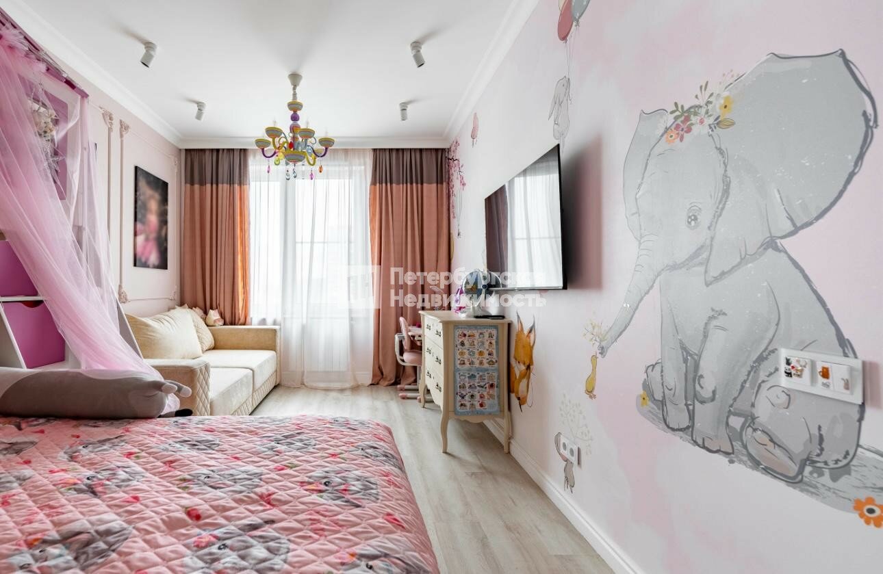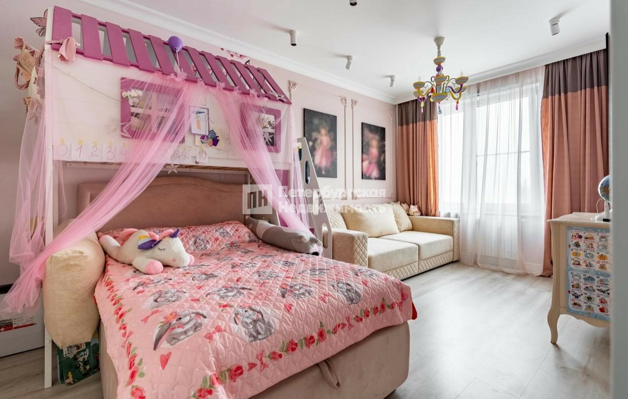 Спальня с вместительной гардеробной,стильная детская комната,отдельная ванная комната,туалетная комната,просторный коридор.