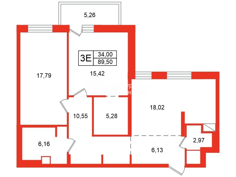 2-комн. кв. 89.5 м² у метро Василеостровская
