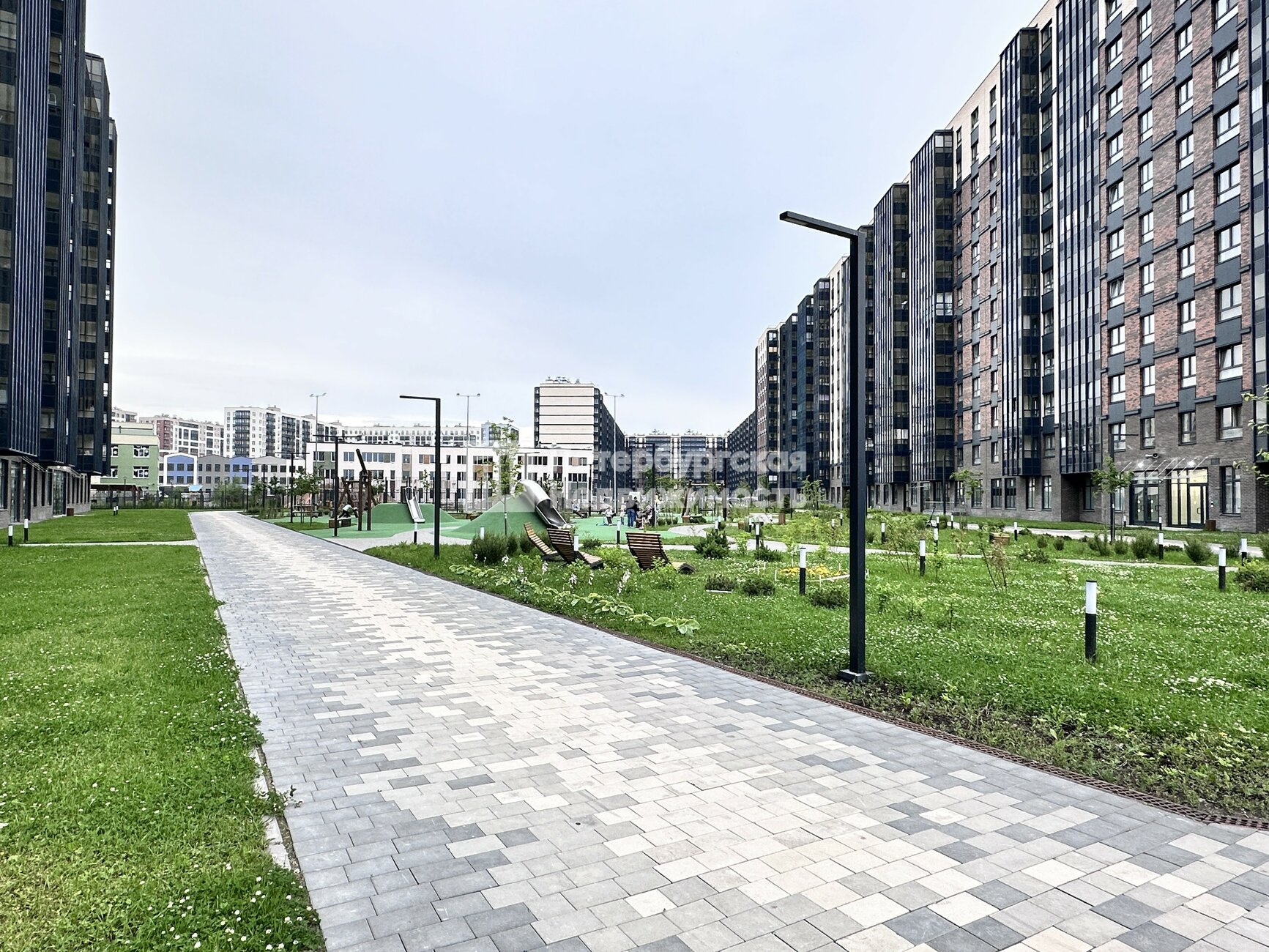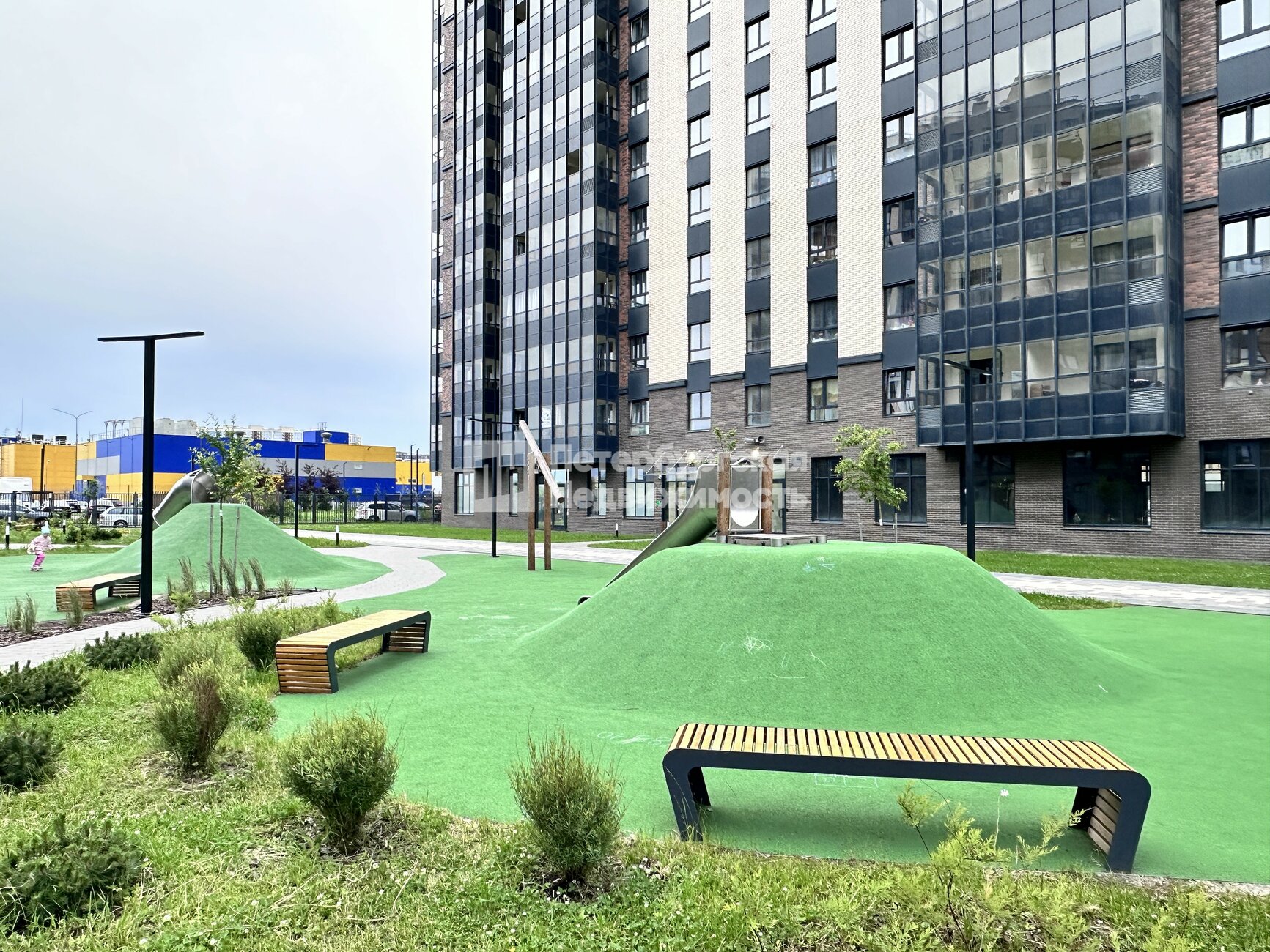 - Благоустроенная придомовая территория: детская площадка для среднего и малого возраста, спортивная площадка, площадка для йоги, сквер для отдыха, собственный дендропарк.