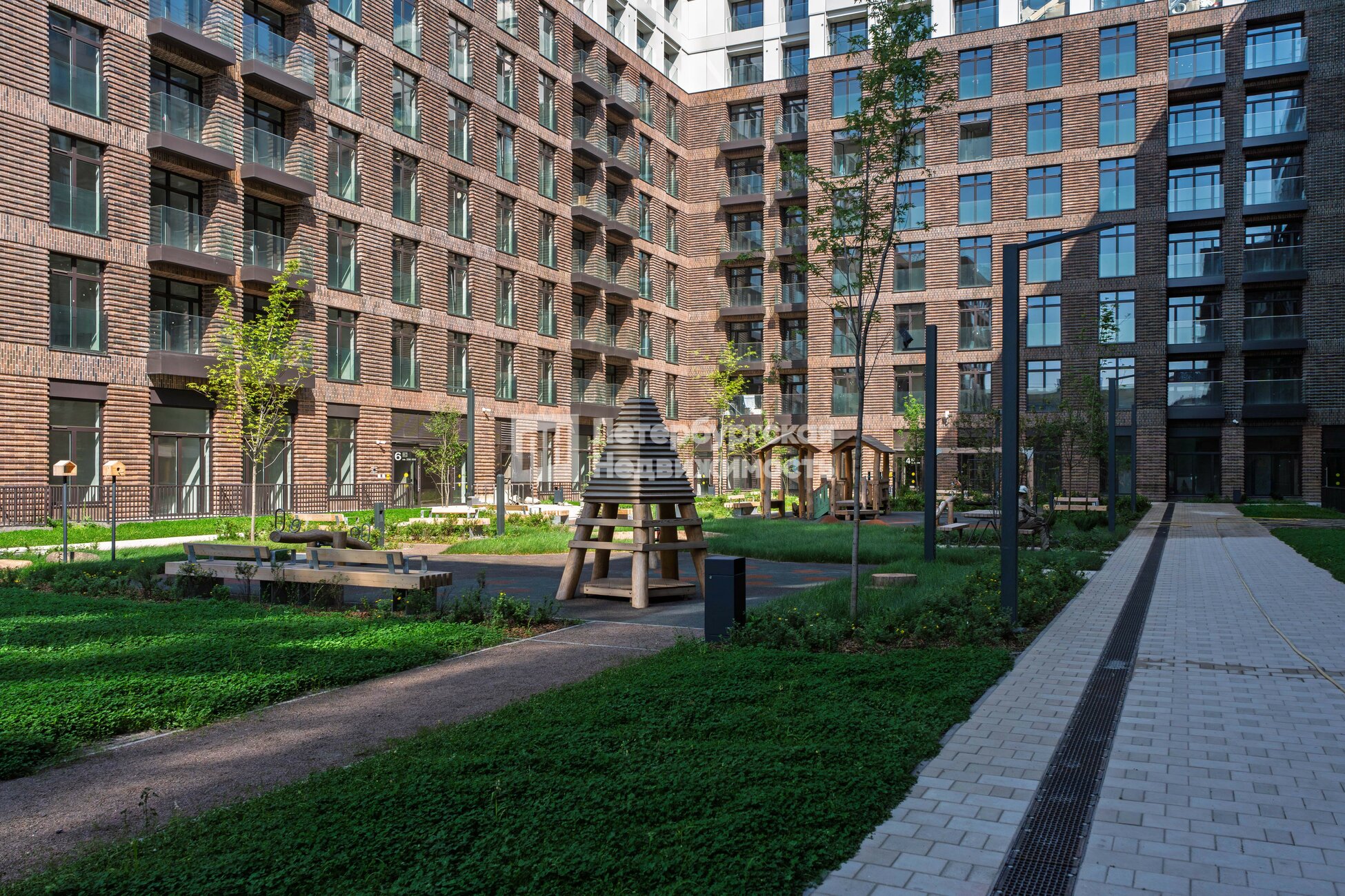Дом облицован клинкерным кирпичом в стиле промышленной петербургской архитектуры. Установлена система чиллер-фанкойл, на фасадах не будет блоков кондиционеров — всё охлаждение происходит внутри здания.