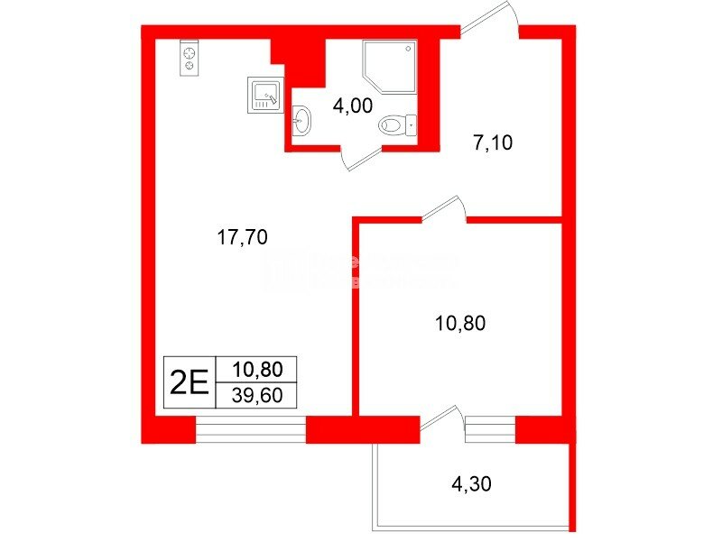 Общaя площадь квартиpы с балконом 45кв.м.