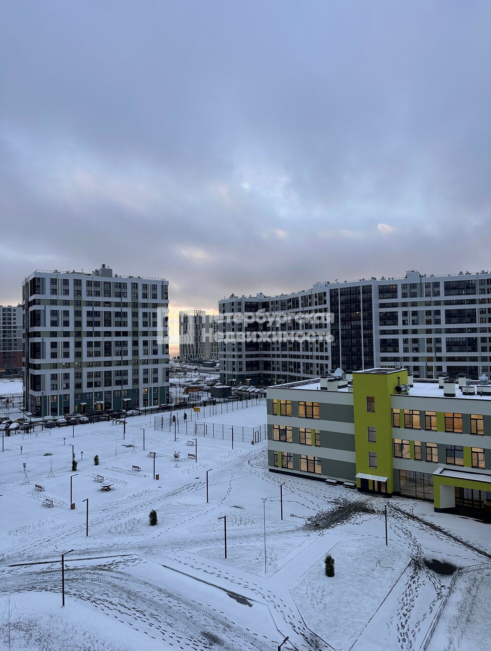 Окна выходят во двор на школу.