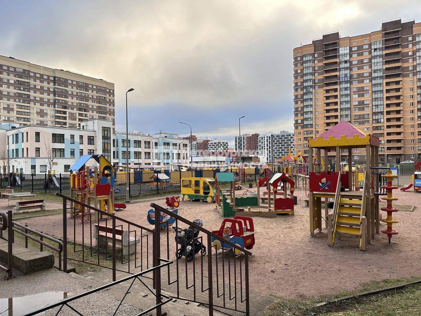 Ухоженный, зеленый двор с детской и спортивной площадками. На спортивной площадке есть тренажеры и теннисный стол. Напротив дома – новый детский сад и школа. В доме на первом этаже есть продуктовый и хозяйственный магазины, пекарня, парикмахерская, аптека. Район в целом очень благоустроенный, поблизости есть всё необходимое: магазины, кафе, пункты выдачи заказов Ozon и Wildberries, зоомагазины, аптеки, спортивные клубы, школы, поликлиники, отделения банков, копицентры, ателье и другие заведения. Рядом с домом легко найти место для парковки автомобиля. Чистый воздух, в 10 минутах ходьбы от дома – река Охта и парк «Охтинская долина» - отличное место для прогулок с детьми и питомцами.