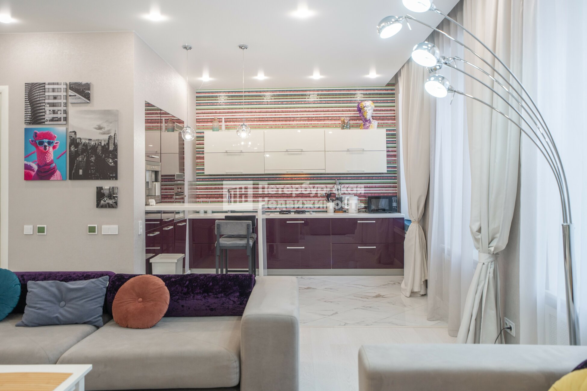 Редкий формат: кухня-гостиная 45 м2, высокие потолки 3 метра, много воздуха и света, ощущение полноценного дома, а не стандартной планировки.