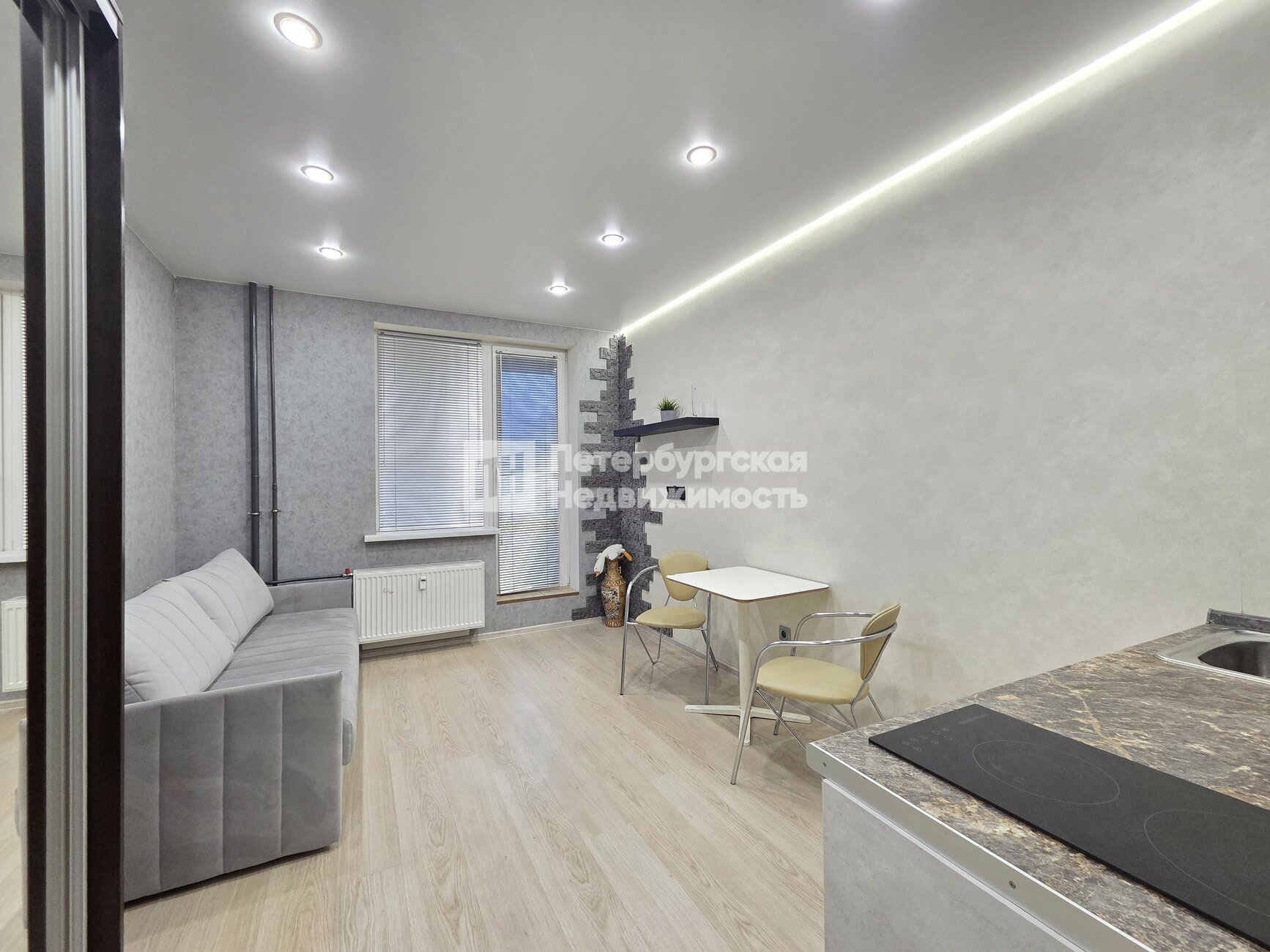 Продается уютная студия в ЖК «Вернисаж». Дом расположен недалеко от станции метро «Дыбенко».