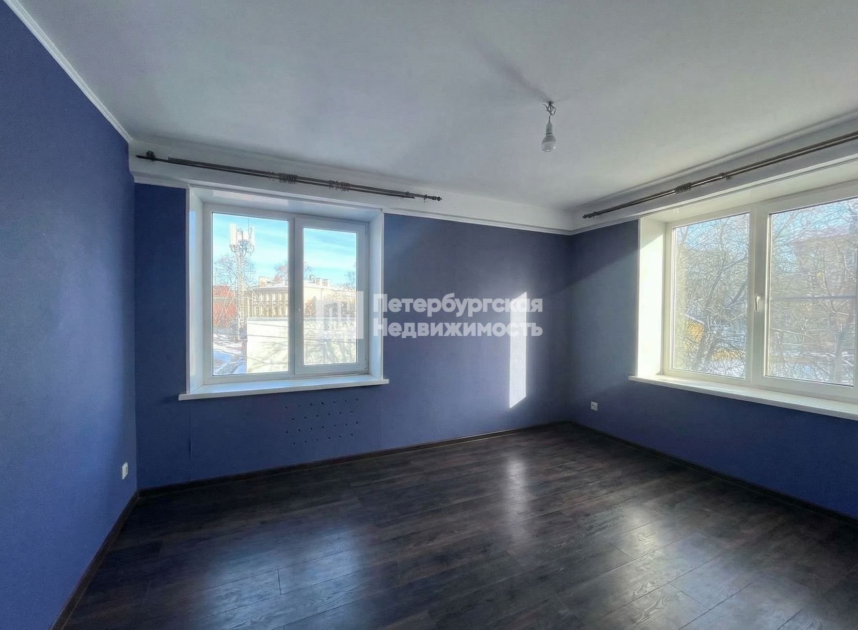 Комнаты — 13,4 и 17,5 м2, в каждой по два окна, что делает квартиру особенно светлой и даёт возможность удобного зонирования.