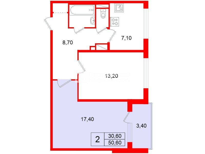 Комната 17.4 м² в 2-комн. кв. у метро Купчино