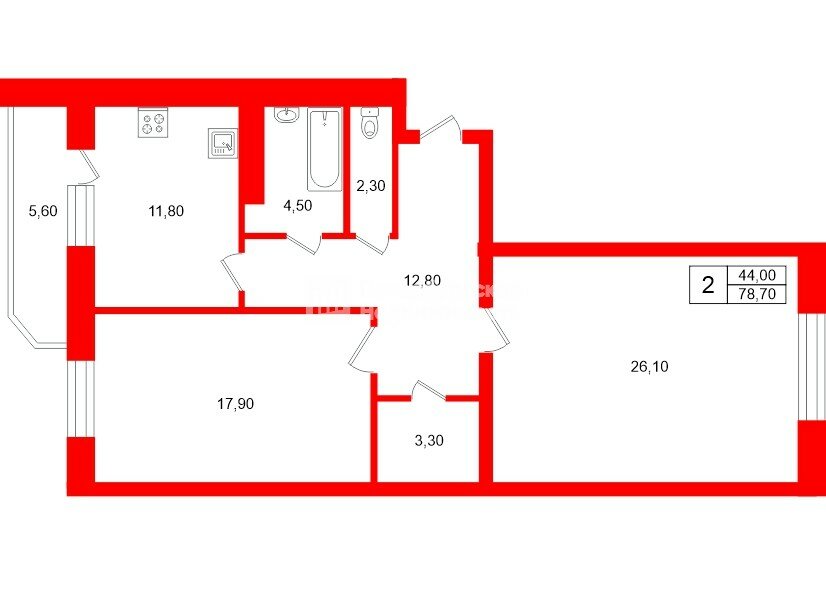 • планировка: светлая кухня с выходом на благоустроенную лоджию, большое пространство гостиной - 26 м2, спальня, гардеробная, раздельный с/у, просторная входная зона